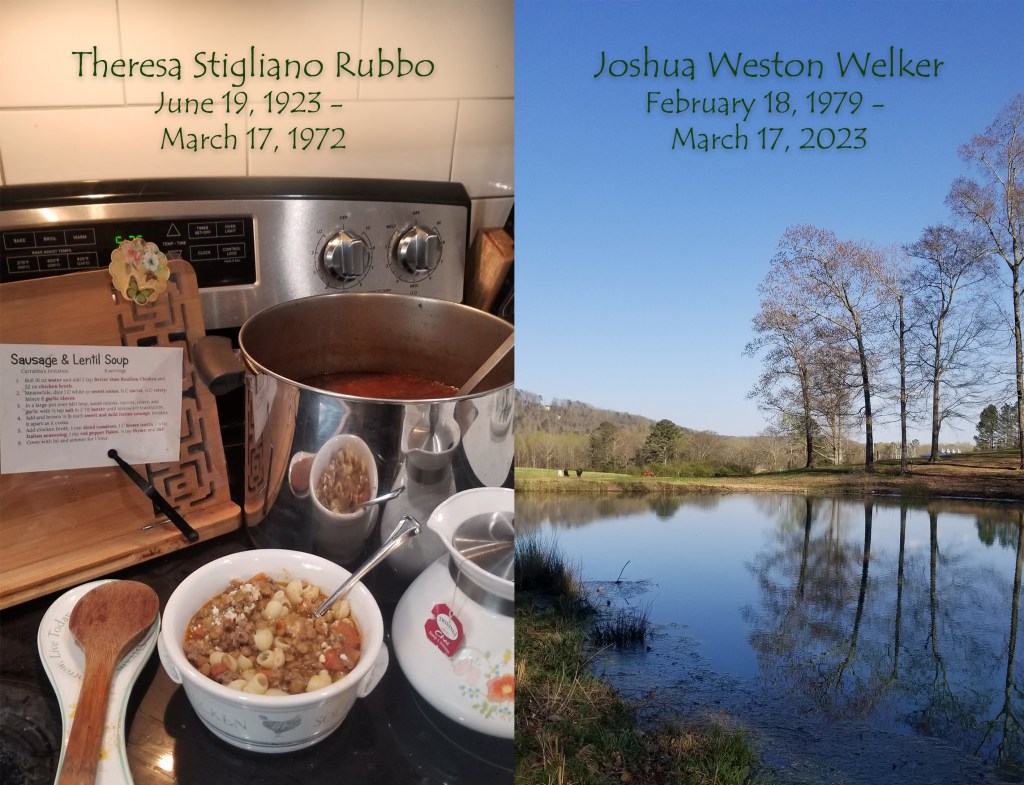 In recent weeks, I’ve been tweaking an Italian Sausage and Lentil soup recipe. It’s what I was making when I got the news that my friend Josh had died in his sleep on Friday. I calculated the date mentally, stored away the irony to process later. He would never turn forty-five, never… I can’t finish that train of thought. You can, but it hurts. I had to finish that soup, though. I chopped. Sautéed. Browned. Boiled. Simmered. That was all I knew to do. And after I was done, I stopped. Sat down. Wept.