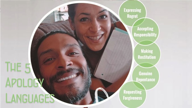 We downloaded the audiobook on Audible and listened separately, debriefing on chapters throughout the week. We finished, then read it again. Just like with love, people have different ways of expressing and receiving apologies. These are the five ways: