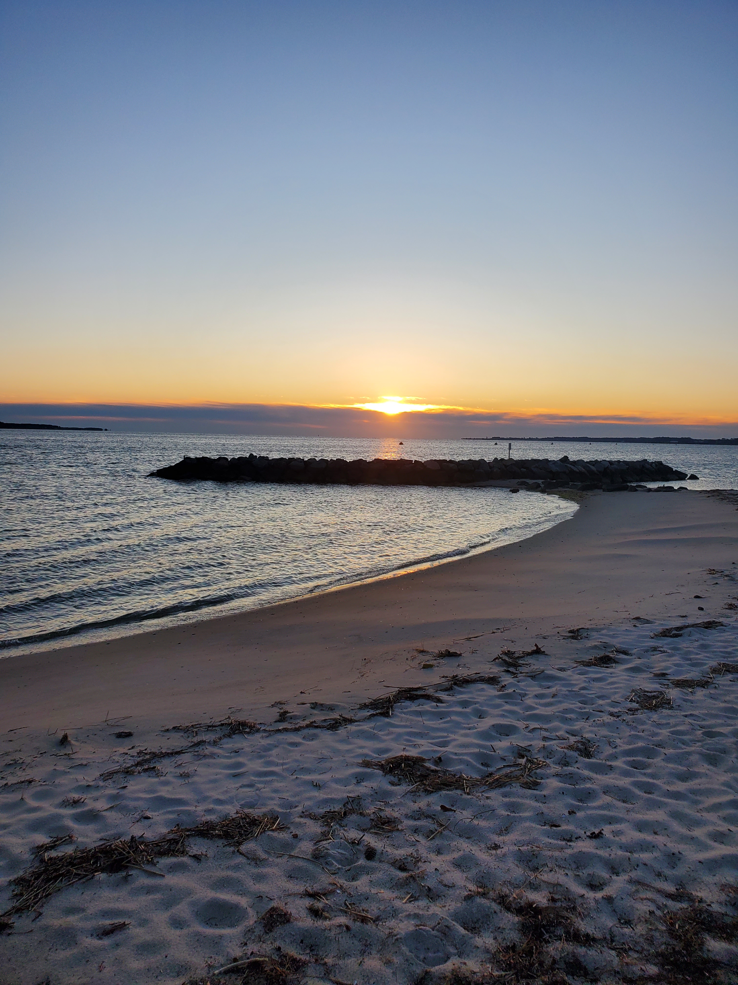 Then, one day at a time, a couple minutes each day, the sun rose earlier. Eventually, I went straight from the gym to Yorktown Beach and journaled through the sunrise before going home to prepare breakfast and get dressed. And just when I’d settled naturally into this rhythm, we sprung the clocks ahead an hour, so once again Cali’s back beside me for the color and light show.