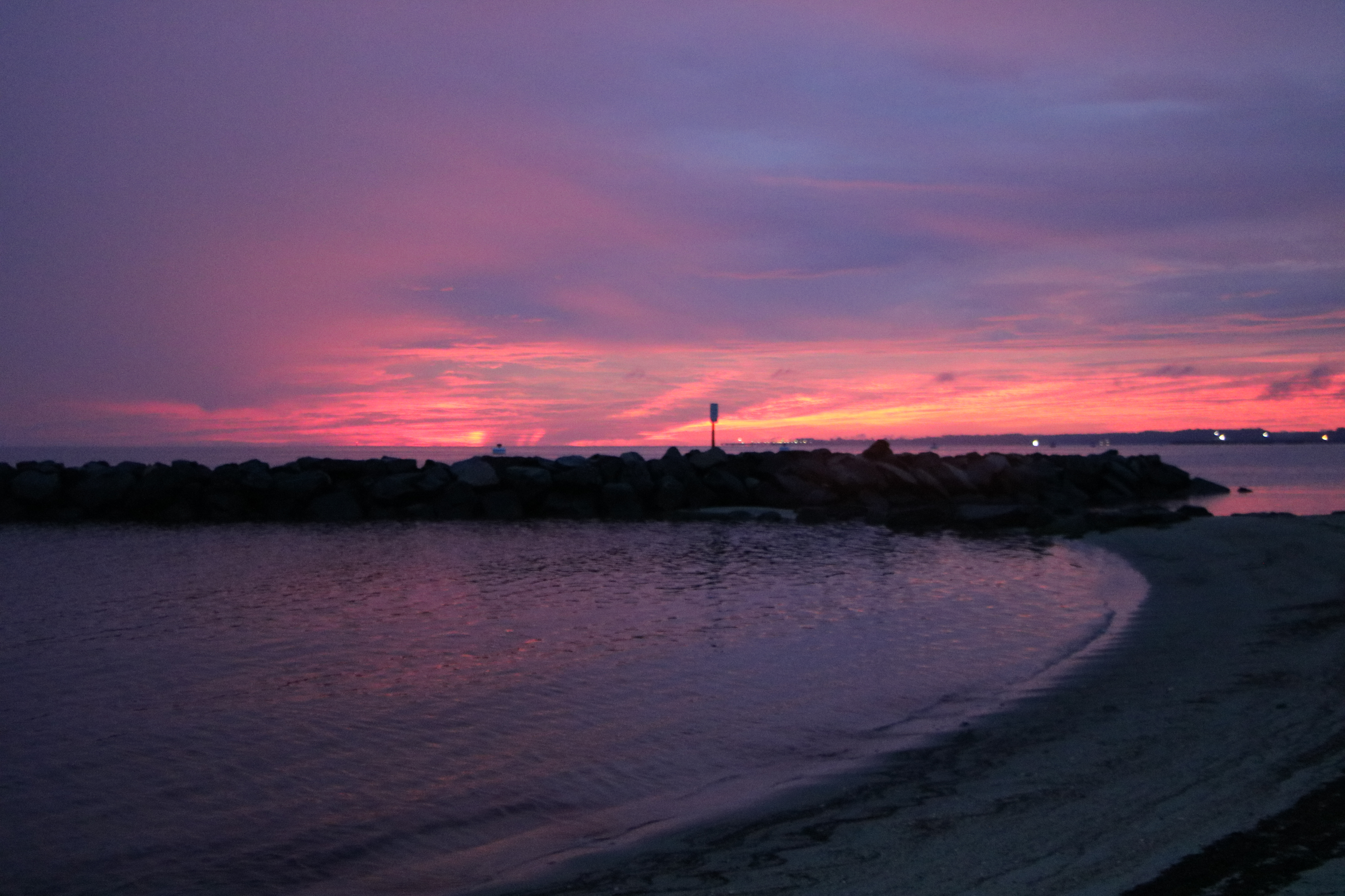 I’ve been coming to Yorktown Pier every morning since last December. Sprinkling lightly? I still set up my beach chair. On the last two rainy occasions, it was as if the precipitation paused just for me, leaving me to journal in a just-dry dawn. Even when I know I won’t see the sun crest – might not see it at all – I’m still there.