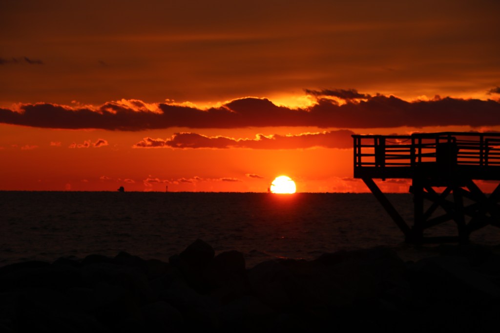 I smile in spite of myself at the pier each morning. I don’t always feel God’s arms around me. I wish I could. Nevertheless, sometimes the sunrise feels like His embrace. The light touching the water before it touches me, warming what it reaches, patient with what it hasn’t gotten to yet.