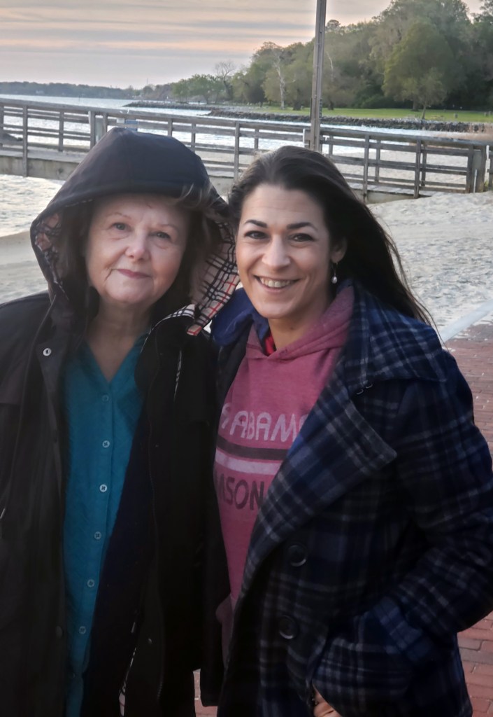 She flew in from Huntsville for Easter weekend, and she wanted her to see in person the sunrise from my texted photographs over the years. We layered up. It had been warm enough to sit outside with my beach chair for a few days, but the wind bit.