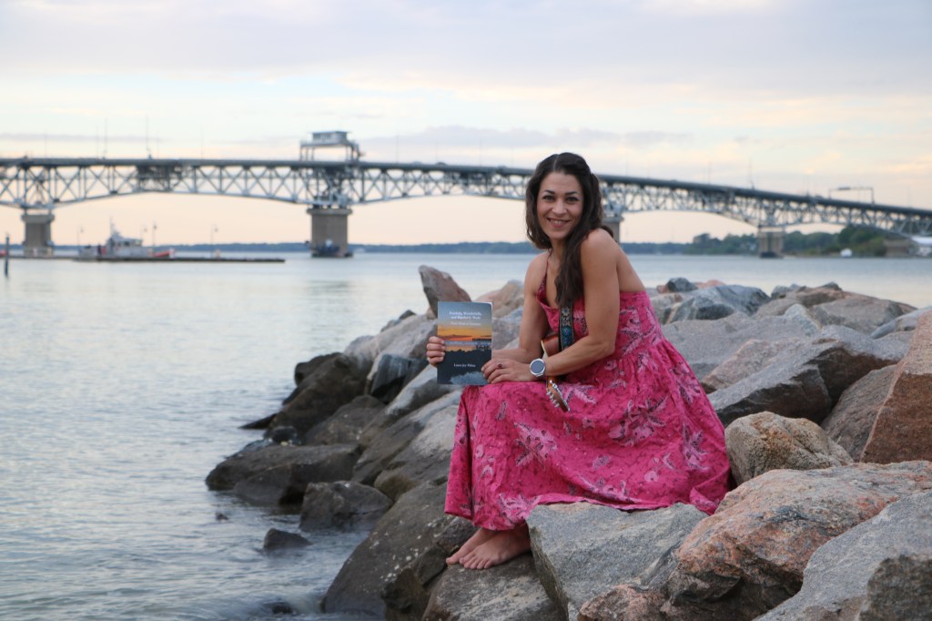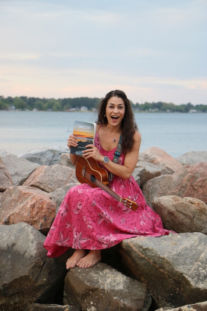 I wore my mother’s pink vintage floral dress from decades ago. I wanted her with me. I wore a butterfly pendant that matched, given to me by someone who once cherished me. Summer Sarah was strapped across my shoulder, not because I planned to play my ukulele, but because she made me feel more like myself. A companion, a security blanket. Something to hold besides the book.